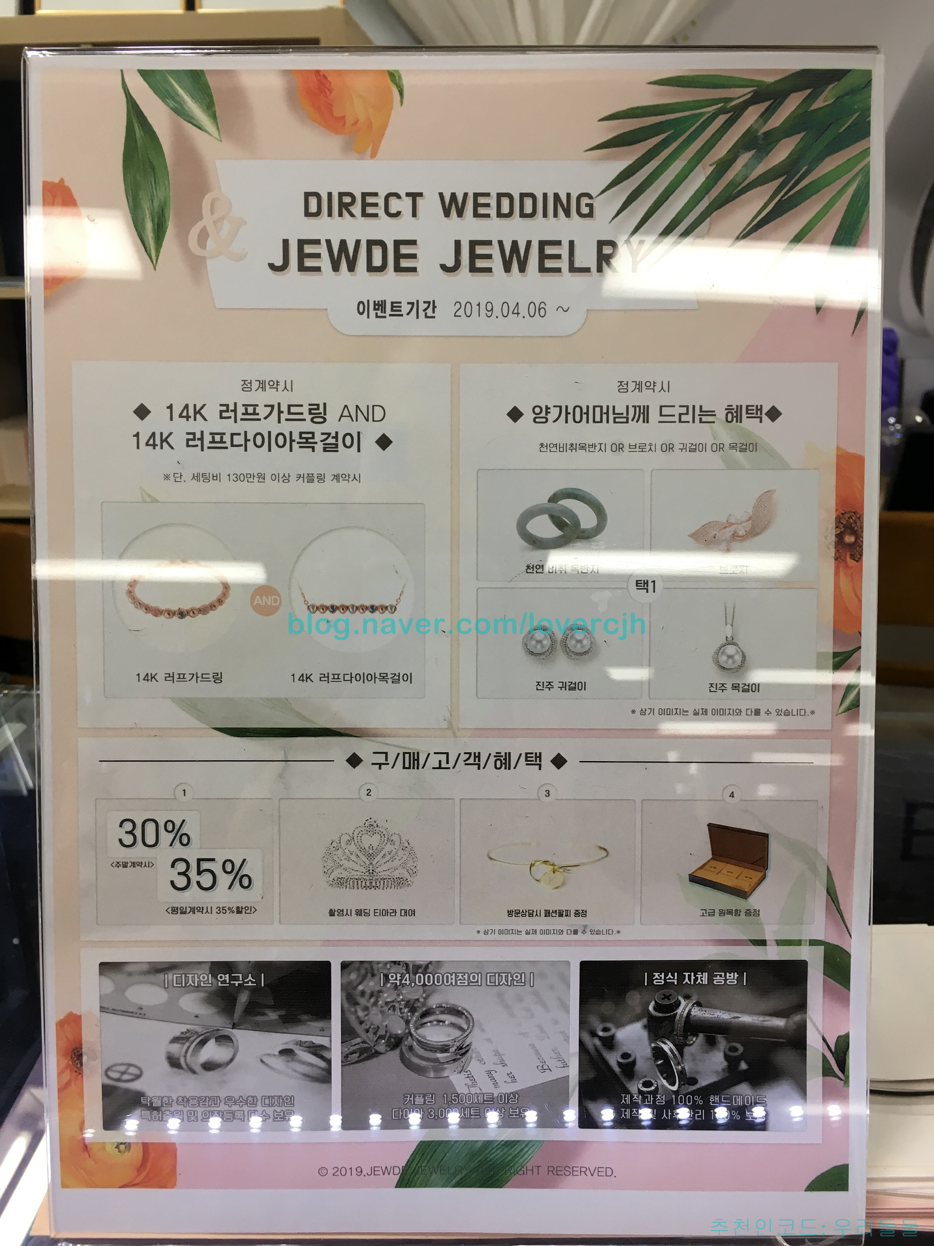 | [예물] 쥬드주얼리 청담본점 결혼반지 결정한 후기에요~^^* - 2019.06.17 (0) | 2019.06.18 |