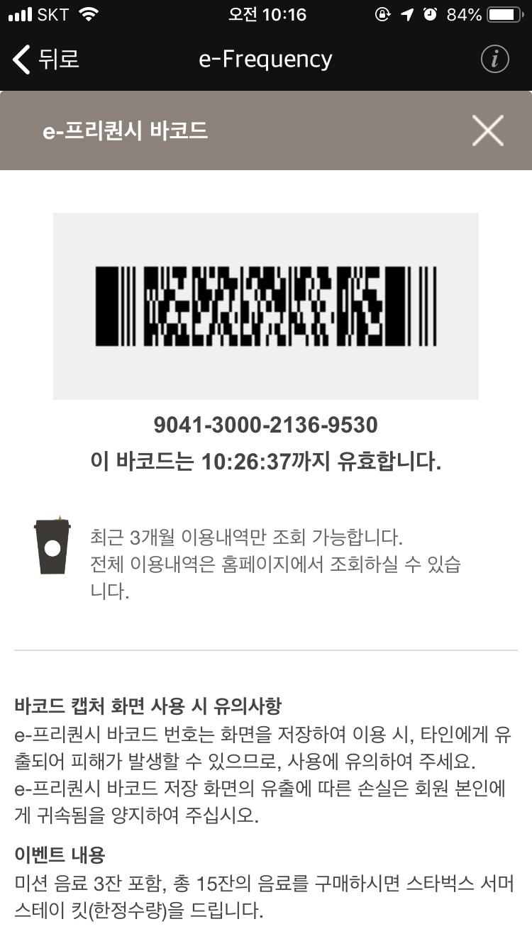 스타벅스에서 현재 진행중인 2019 여름 e-프리퀀시 이벤트용 e-스티커를 구해봅니다. ^^;